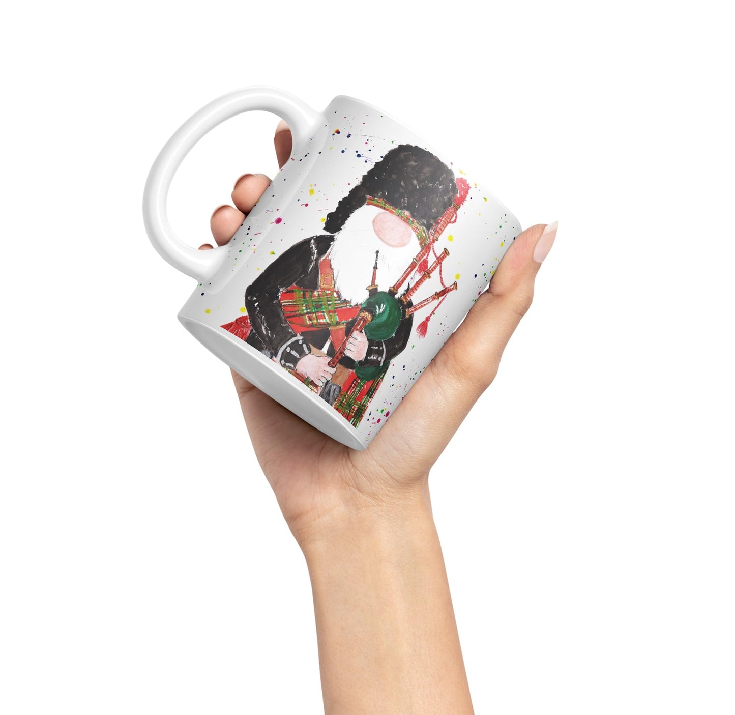 Scottish Bagpiping Gonk Tomte Watercolour Art Coloured ceramic 330 ml Mug Cup Gift Birthday Work Office Tea Coffee