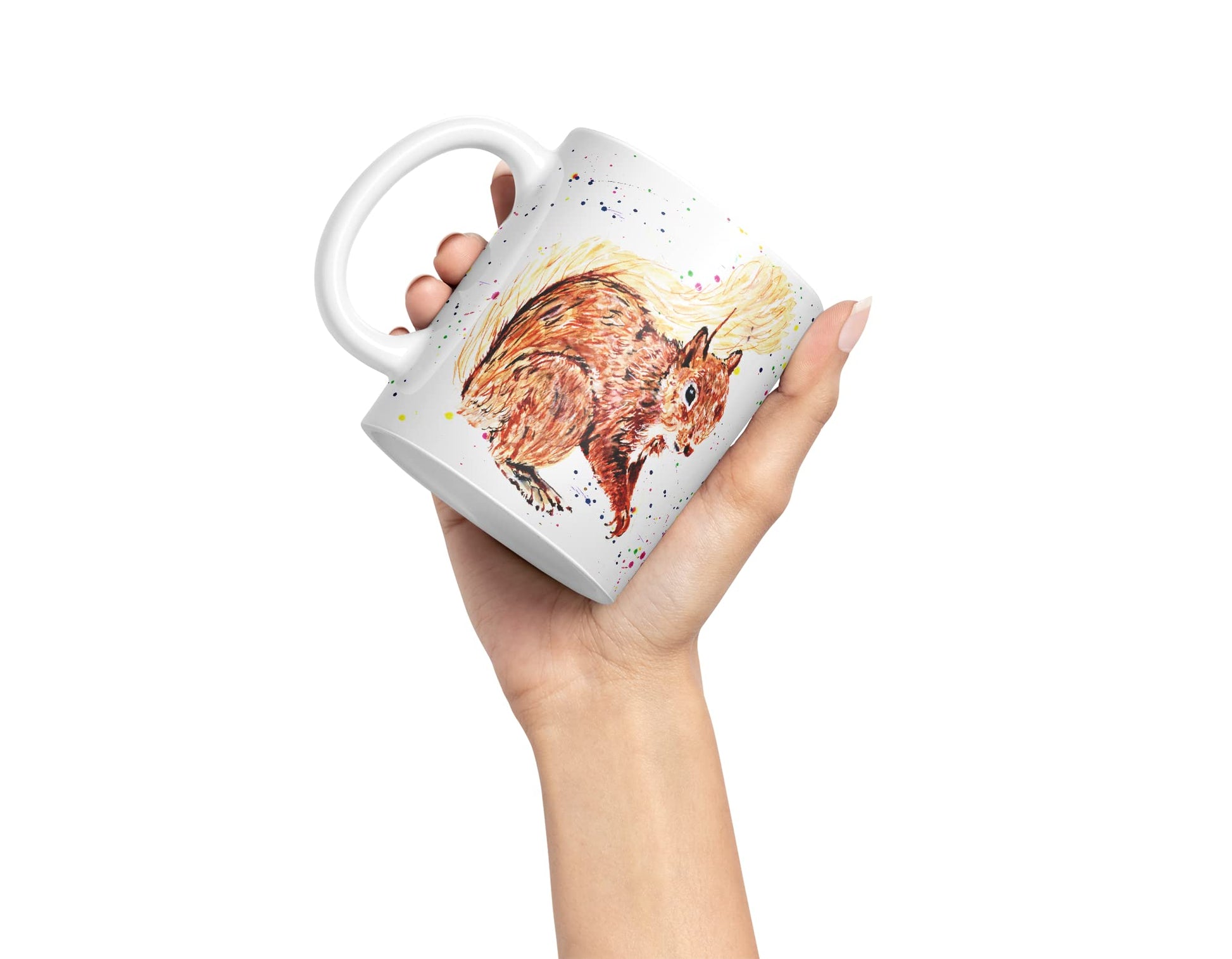 Vixar Squirrel Wildlife Natural Animals Watercolour Art Coloured Mug Cup Gift Birthday Work Office Tea Coffee