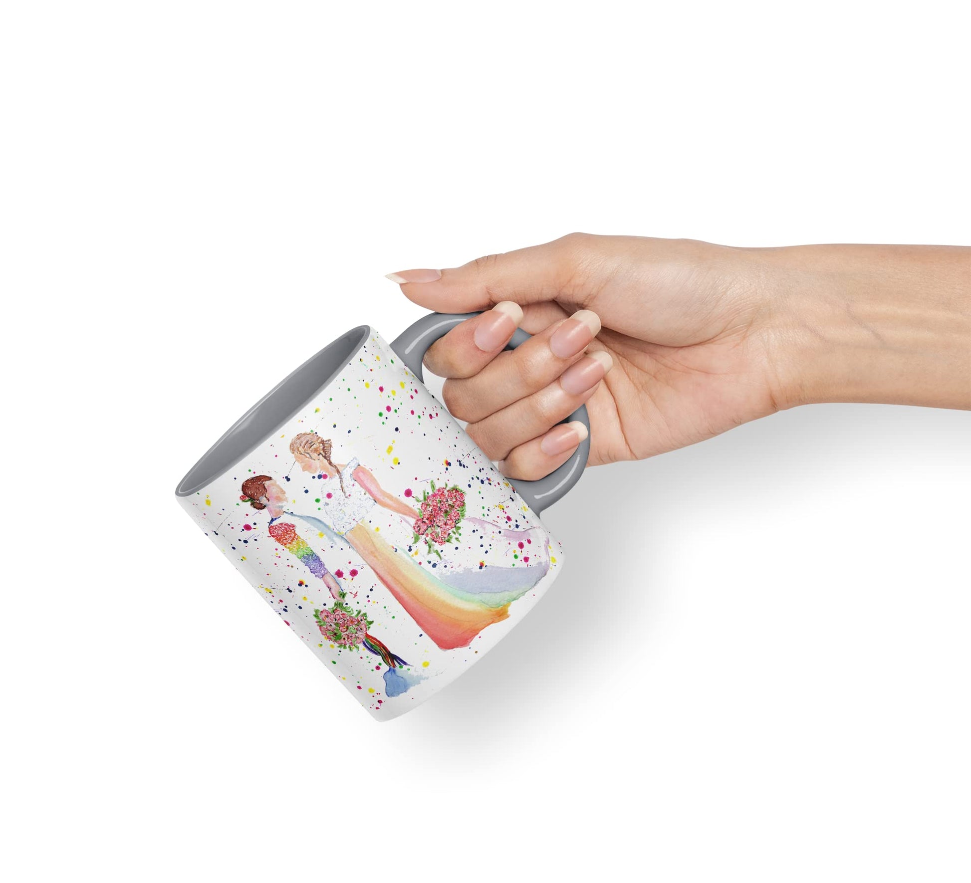 Vixar Wedding Mrs and Mrs Pride Lesbian Gay Watercolour Art Coloured Mug Cup Gift Birthday Work Office Tea Coffee