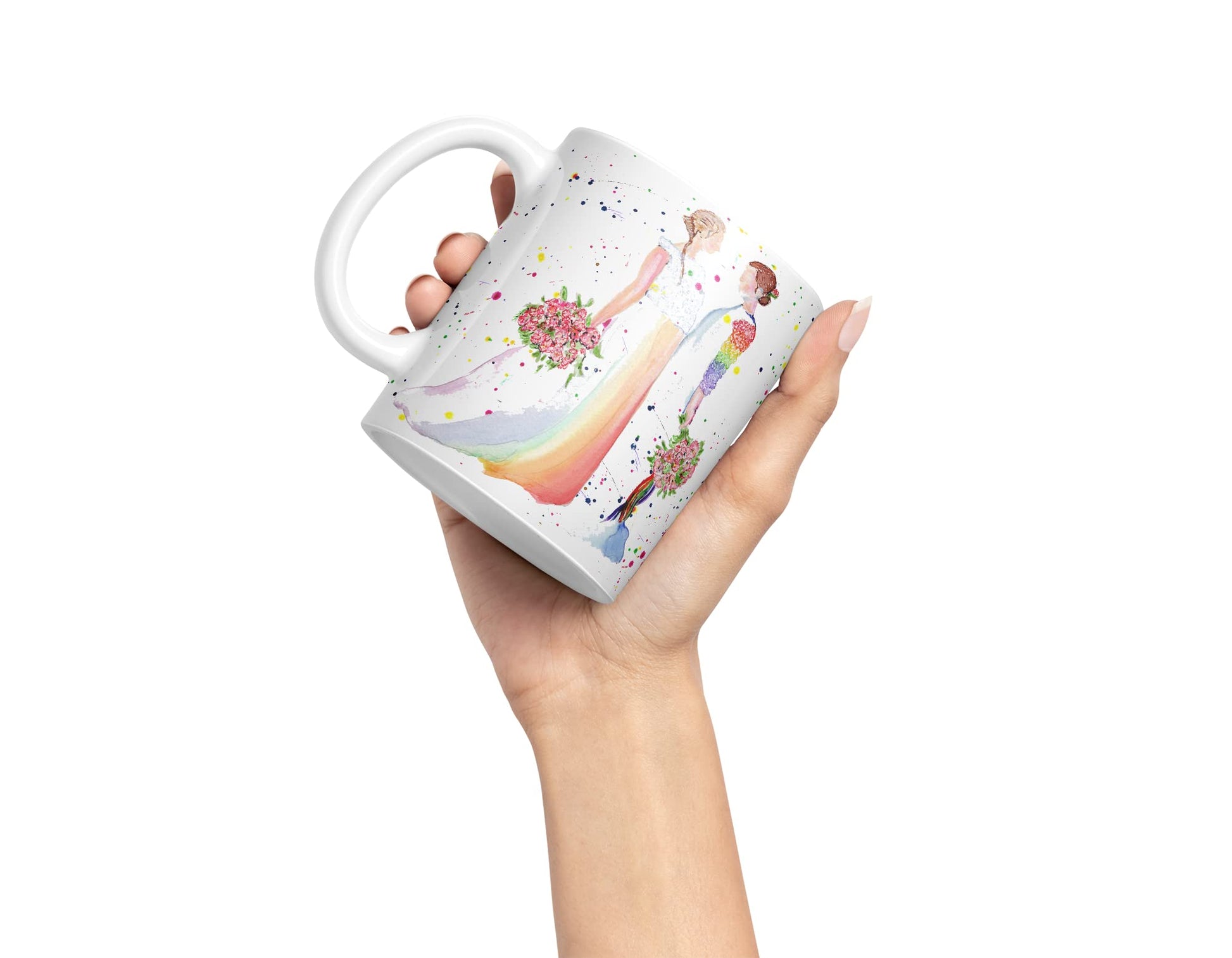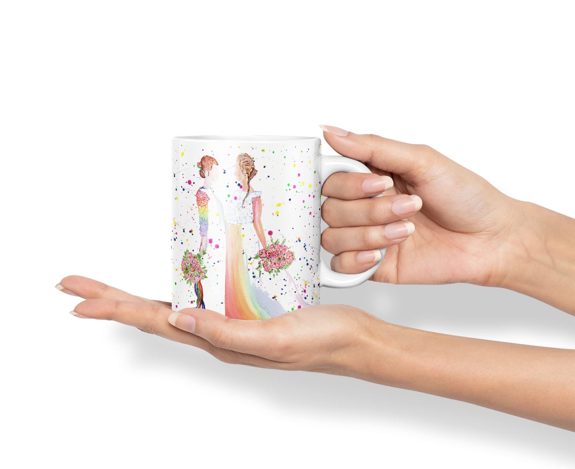 Lesbian Wedding Mrs and Mrs Pride Gay Watercolour Art Coloured Mug Cup Gift Birthday Work Office Tea Coffee